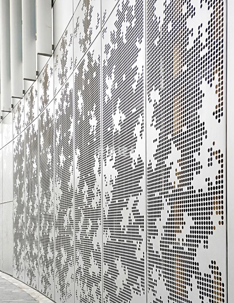 外墻裝飾網(wǎng)采用的是鋁合金板或鋁板為底材,通過模具加工沖壓加工而成,表面處理為陽極氧化或經(jīng)典粉末噴涂處理加工,菱形沖孔網(wǎng)是奧迪4s店指定外墻板產(chǎn)品,而奧迪4s店指定鋁單板的要求板材厚度為2.0mm,孔型規(guī)格為25*60mm蜂窩孔(也稱六角孔,菱形孔)而它的標準外型尺寸是525*2000mm,630*2400mm梯形穿孔鋁板,特殊尺寸會根據(jù)展廳的需求進行定制。